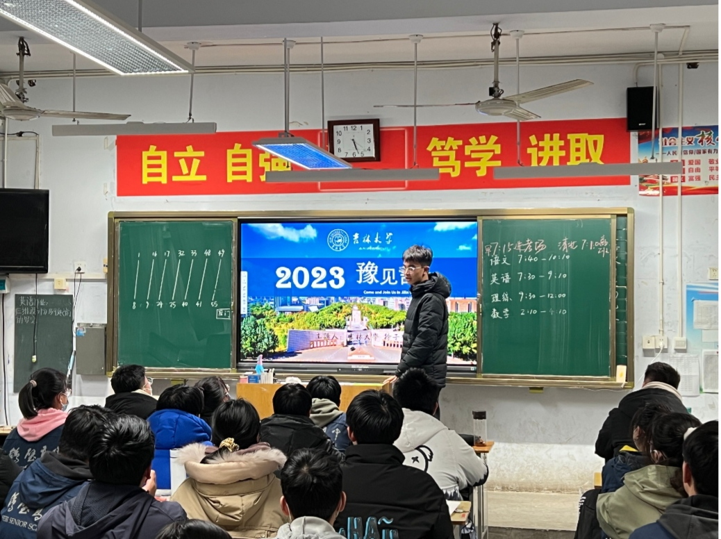 宣讲前期团队分工明确,联系母校,各自找寻自己擅长的模块进行20到30分钟的讲解,并进行排练,设备测试等。该同学在宣讲中就吉大优秀员工,吉大在山东省的录取数据以及吉老员工的未来发展进行讲解。认真回答学弟学妹们提出的问题,并分享自己高三备考阶段的经验。宣讲后及时总结宣讲中的问题,丰富了实践经验,提高实践能力,认识自己的不足。