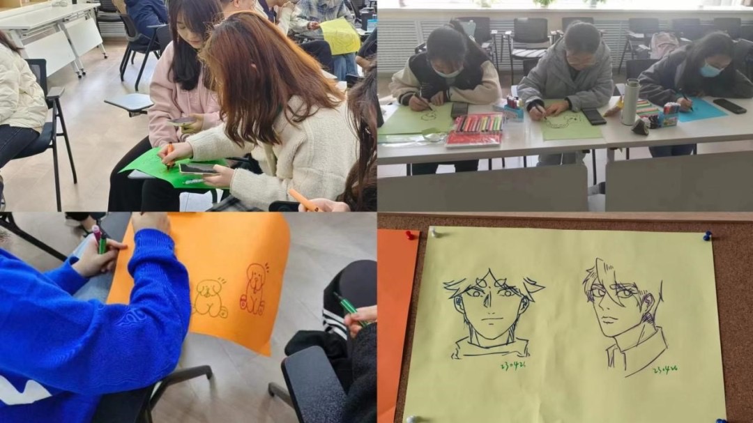 在同学们愈发高涨的情绪中,活动进行到尽情涂鸦环节——“我是马良”。同学们执笔为剑,以各自独特的视角,描绘着心中美好的画卷;以独具匠心的构思与创意,让缤纷的色彩搭乘理想的翅膀在画纸上自由翱翔。线条的勾勒、色彩的填充构成了一幅幅自由、清新、随兴的艺术……