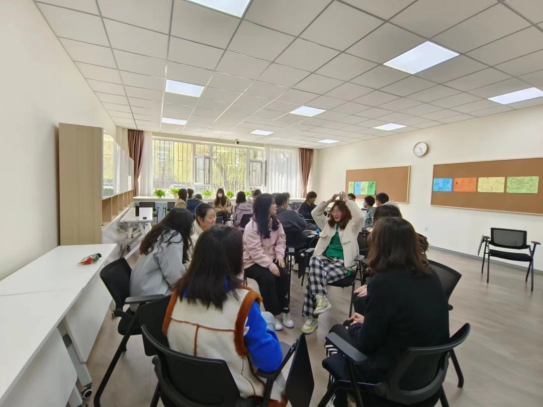 活动伊始,主持人介绍了本次心灵沟通主题班会活动的内容和目标,表达了对本次活动效果的美好期望,并号召同学们敞开心扉,积极参与。同学们首先进行了热身小游戏——情绪大头贴。主持人将情绪卡背面朝上,让所有参与者随机抽取一张并保密,参与者以人体雕塑及相关暗示引导其他成员猜出卡片内容。待所有卡片内容都被猜出后,小组成员集思广益、通力合作,根据一个组的卡片内容串演成一个简短的情景剧。同学们很快进入了角色,气氛逐渐热烈起来。