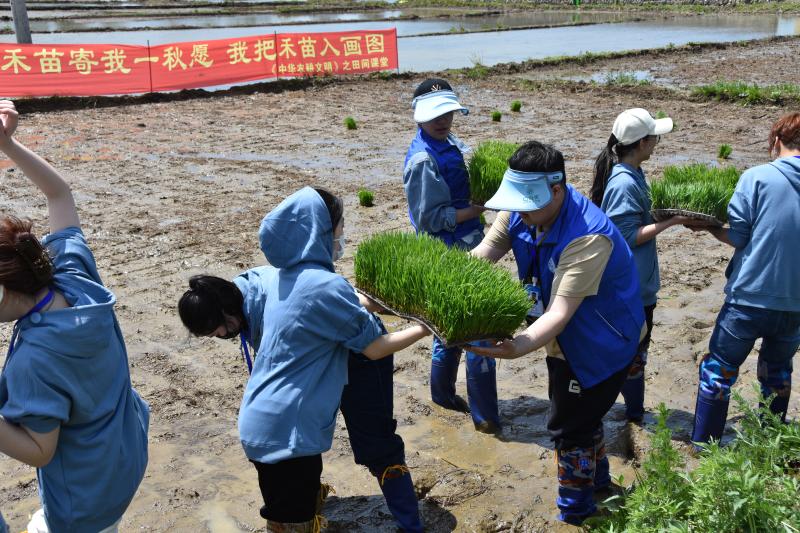 EMC易倍官方网站副经理韩俊友及几位专任教师向实践团师生详细讲解了水稻插秧的注意事项并亲身示范,带头在品种实验区插下垄垄青苗。随后,实践团成员纷纷下田,师生一同换上插秧靴,挽起衣袖,在哈达门乡的稻田间接过秧苗,种下由EMC易倍平台植物科公司自主研发的水稻品种——“吉大6”,共同播种下新的希望。在分苗、俯身插秧间,师生种植了水稻,也延续着袁隆平院士的稻田梦想。