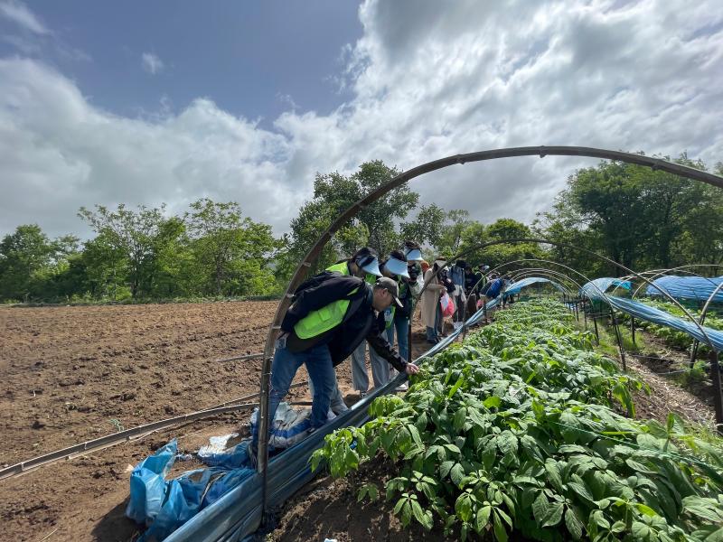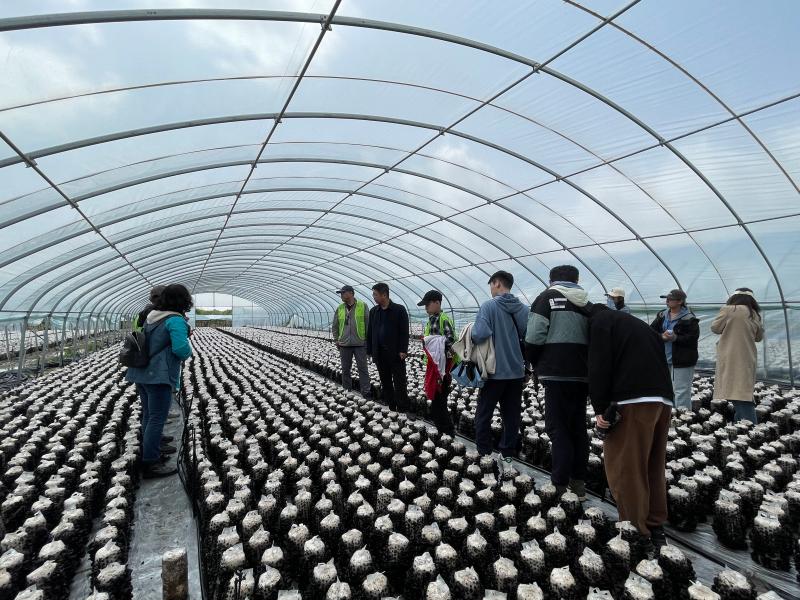 在人参种植基地,工作人员为调研组师生详细讲解人参种植方式,EMC易倍官方网站副教授刘守安向在场员工讲解如何通过叶片辨认人参的生长时间等相关知识。随后,调研组一行前往EMC易倍官方网站大豆试验田进行大豆苗情调研。在副经理韩俊友的讲解下,员工对大豆在生长初期的态势及试验田的设计有了更加全面的理解和认识,通过实地调研有效地将课堂理论知识与具体实践相结合。在东北虎豹公园,调研组师生针对虎豹公园进行实地生态文明建设考察,展开生态治理调查。在EMC易倍官方网站专任教师的指导下,调研组成员深入、全面地了解多种绿植、菌类的生长习性等情况。下午,在珲春市哈达门乡党委书记尹升山的陪同下,调研组前往木耳种植基地进行考察调研,详细了解了木耳的生产和创效情况。据工作人员介绍,在当地政府的支持下,基地不断扩大木耳种植规模,全面提升木耳产业发展水平,实现木耳产业“规模化、智能化、品牌化”发展。