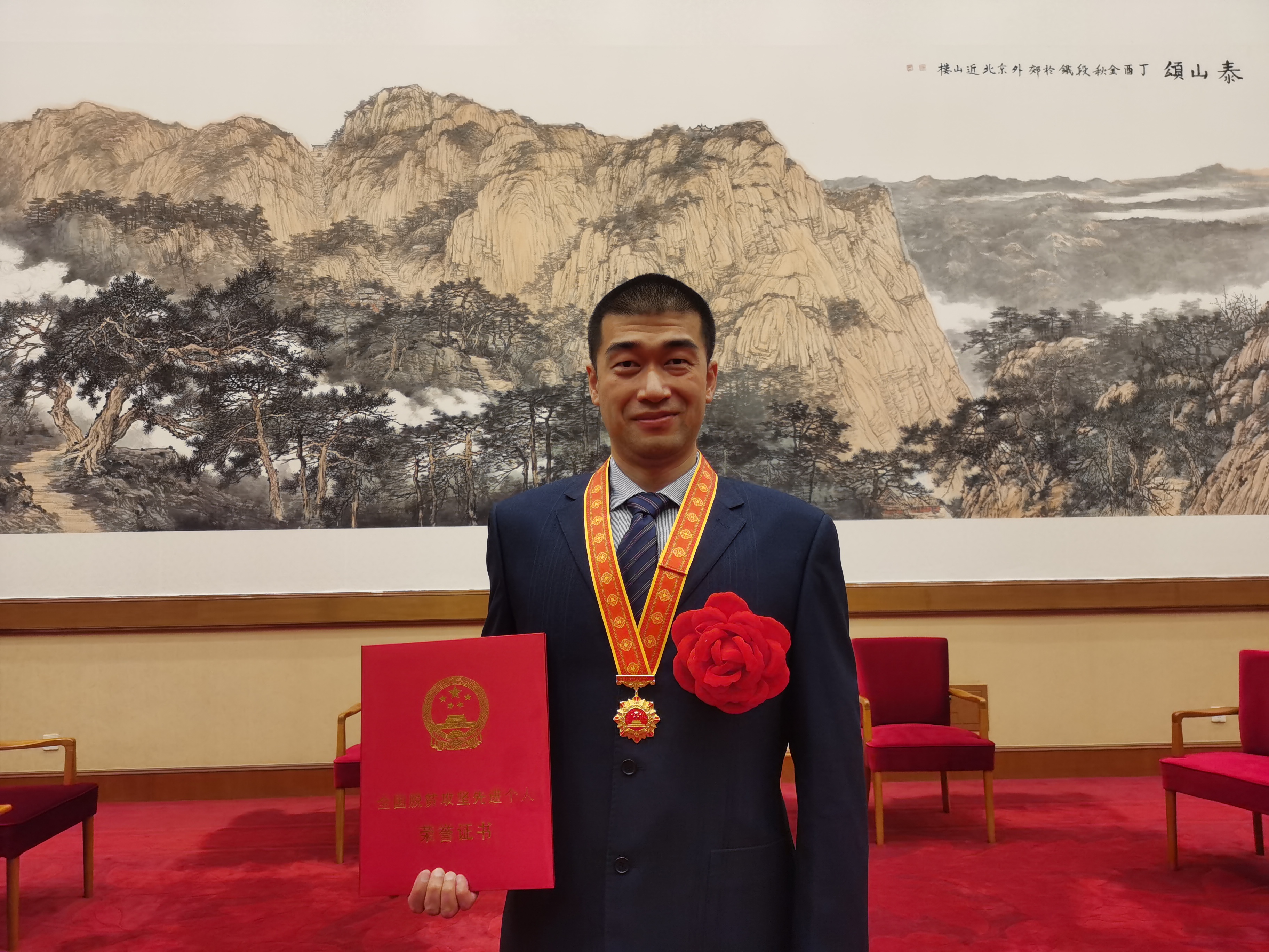 2月25日上午在北京人民大会堂隆重举行全国脱贫攻坚总结表彰大会。中共中央总书记、国家主席、中央军委主席习近平向全国脱贫攻坚楷模荣誉称号获得者颁奖并发表重要讲话。大会还对全国脱贫攻坚先进个人、先进集体进行了表彰。EMC易倍官方网站员工王孝先获全国脱贫攻坚先进个人荣誉称号。