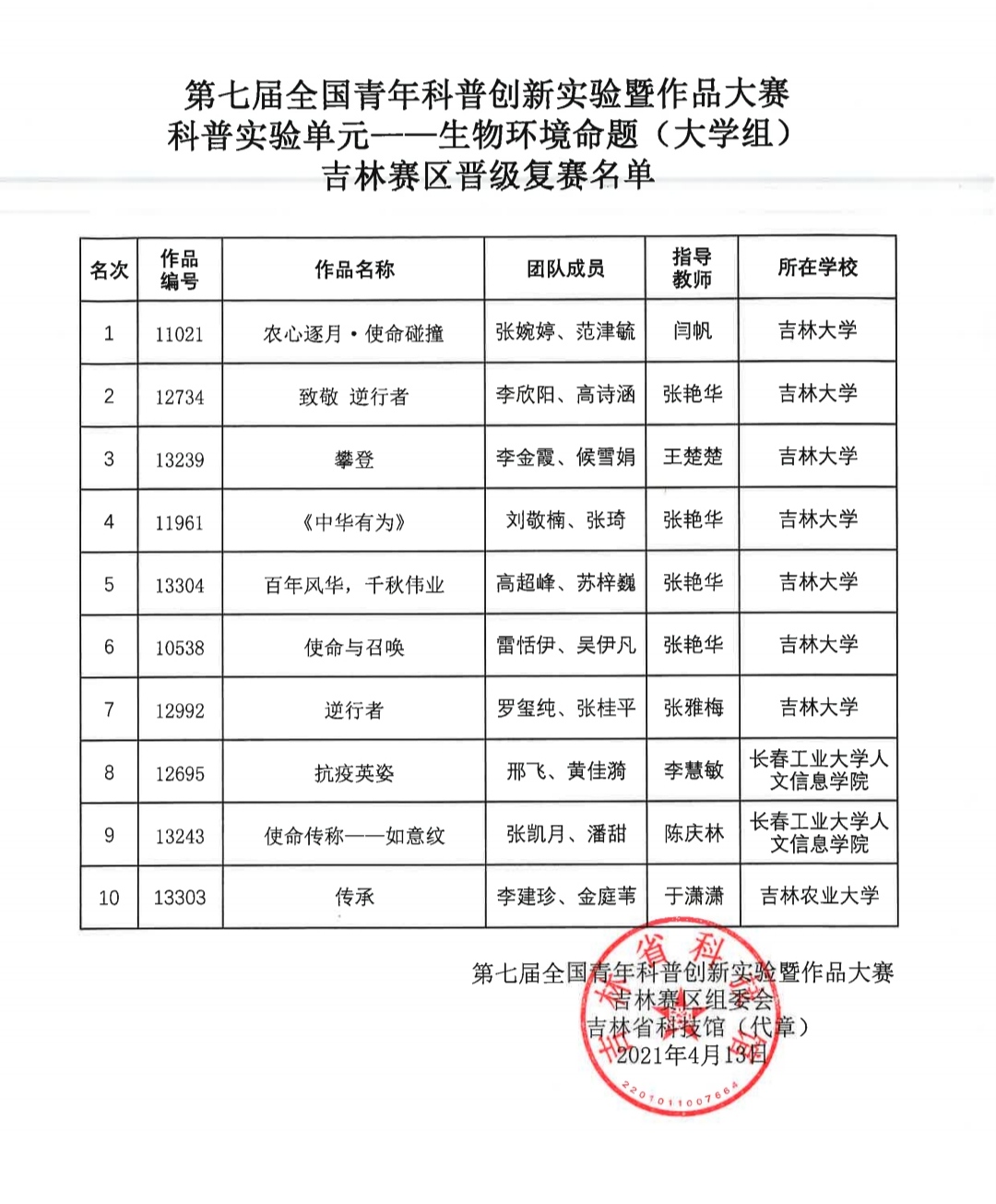 4月11日,由中国科协主办,中国科技馆、中国科协青少年科技中心承办的第七届全国青年科普创新实验暨作品大赛黑龙江—吉林赛区初赛在黑龙江省科技馆圆满落下帷幕,并且评选出了本赛区创意作品单元和科普实验单元各命题晋级复赛的队伍。公司参加了生物环境命题初赛,共有七组同学进入复赛。