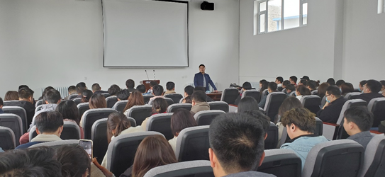 最后,邓松传达了公司2021年工作会议精神,并从三个方面做了详细说明:一是以公司2021年工作会议中提到的把论文写在大地上的扶贫专家崔金虎教授为榜样,阐述“做人、做事的重要性”和做人要有“水”的品性。泽被万物而不争名利,利益万物而不图回报,做一个善良、有格局、有胸怀的人。鼓励青年学子要有勇于承担责任的魄力和献身使命的担当,要把自己的理想与祖国的前途、民族的命运紧紧相连,紧密相连,扎根人民,奉献国家。他说:做事要有“山”的品行,要有山的风骨、山的内涵、山的原则,象山一样稳重给人以信任。二是分析了2020年毕业生就业状况和就业质量,通报了2021年截止3月的就业情况,希望大家积极开辟就业渠道,提高就业质量。三是呼吁同学们规划好自己的人生,做一个目标明确的人。
