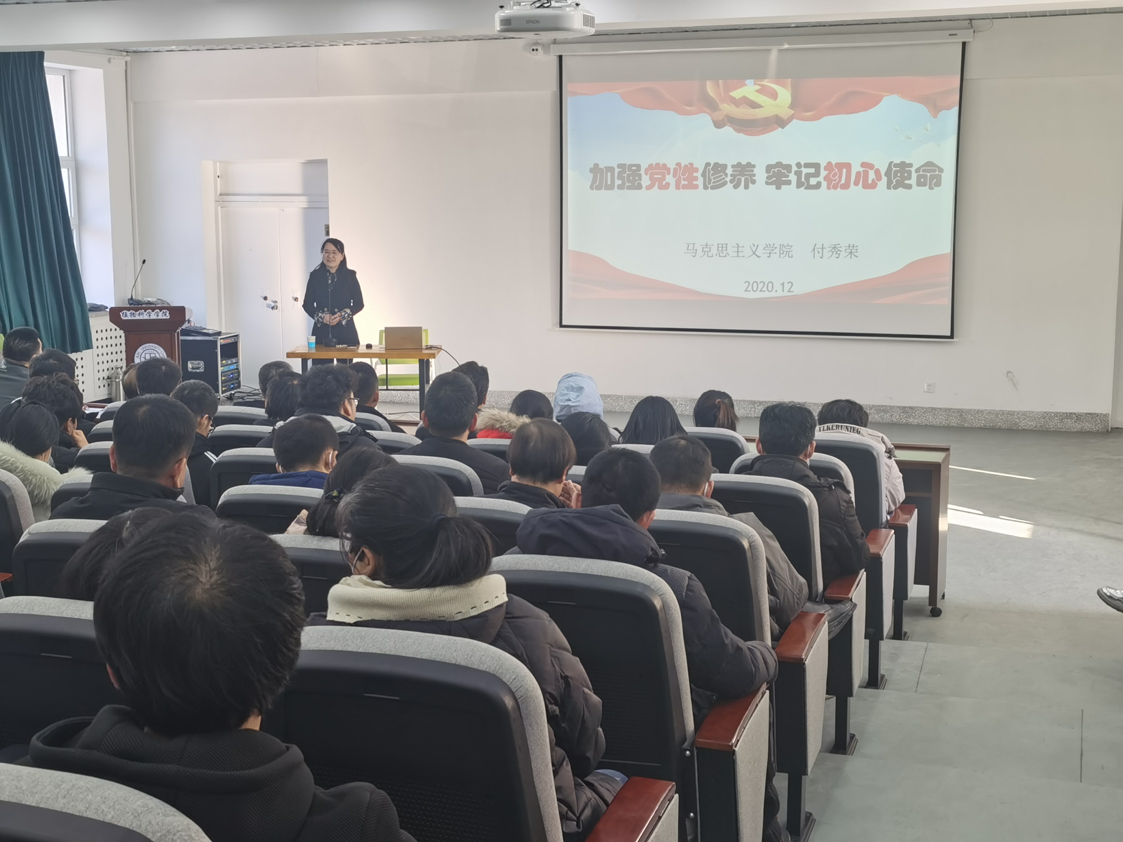 2020年12月4日下午,EMC易倍官方网站邀请到马克思主义公司付秀荣教授到院讲授《加强党性修养,牢记初心使命》专题党课,公司全体党员参加学习,党课由副经理韩俊友教授主持。