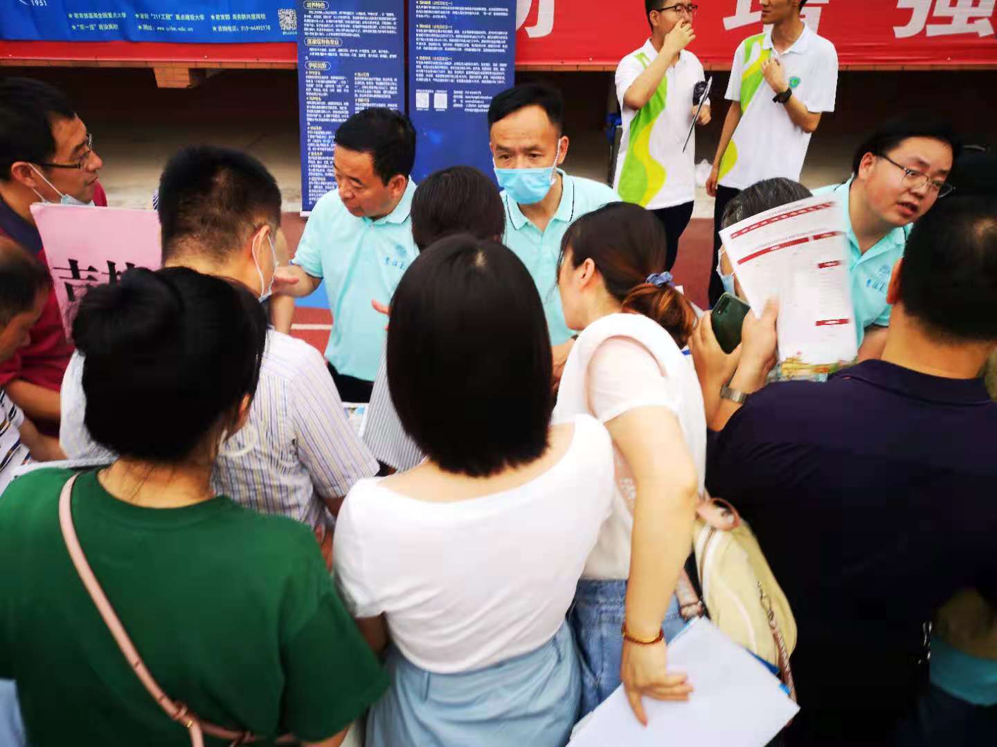 代表团10人共分5组,第一组由唐明祥、吴成锋负责,参加西安中学、咸阳市实验中学举办的高考填报志愿咨询会;第二组由刘金亮、韩红爽负责,参加西安市第一中学、西北工业大学、西安交通大学举办的高考填报志愿咨询会;第三组由姜长松、马国庆负责,参加瑞泉中学、渭南高级中学举办的高考填报志愿咨询会;第四组由梁天也、李清泉负责,参加延安中学举办的高校招生现场咨询会;第五组由张明哲、李远华负责,参加西安中学、宝鸡中学举办的高考填报志愿咨询会。与此同时,为缓解部分咨询会现场人员不足的情况,EMC易倍平台西安员工会副秘书长曹建明同志参与到西安交通大学协助韩红爽老师的工作,员工霍馨蕊同志参与到西北工业大学协助刘金亮老师的工作。