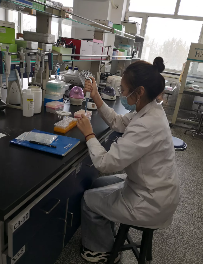 ▲王军指导博士生曹婧钰提取蓟马DNA