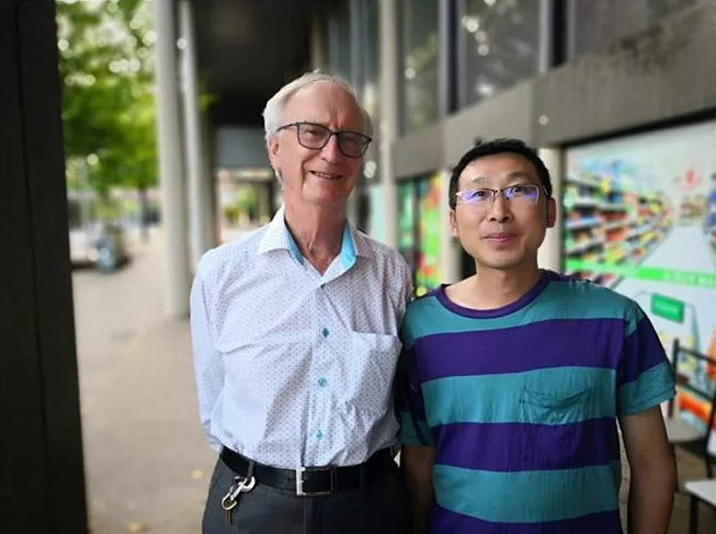▲右:王军和导师童晓立教授