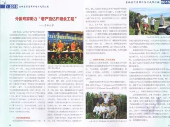 ▲成果入选吉林省增产百亿斤粮食工程优秀引智成果