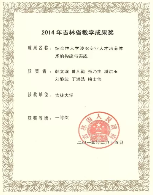 ▲成果获吉林省科技进步一等奖