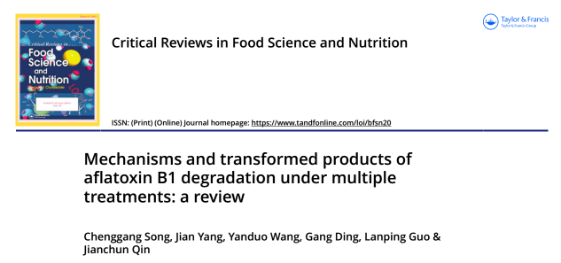 近日,秦建春教授团队撰写不同处理方式下黄曲霉毒素B1降解研究进展的综述论文,从降解机制及产物结构出发,系统介绍了物理、化学和生物三大类脱毒方法的机理、效率和降解产物结构及毒性评价研究,涵盖紫外降解、光催化、臭氧氧化、天然产物降解、微生物降解和酶解等多种脱毒手段的最新进展。同时,从方法和应用两个方面展望了真菌毒素防治当前研究存在的问题和未来可能的发展方向。相关研究成果以“Mechanisms and transformed products of aflatoxin B1 degradation under multiple treatments: a review”为题,于2022年9月14日在线发表于国际食品领域知名期刊《Critical Reviews in Food Science and Nutrition》(中科院1区,IF 11.208)。