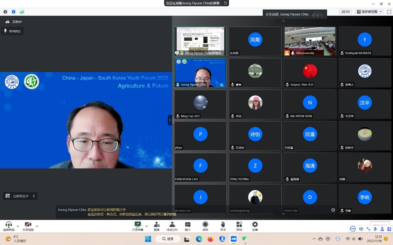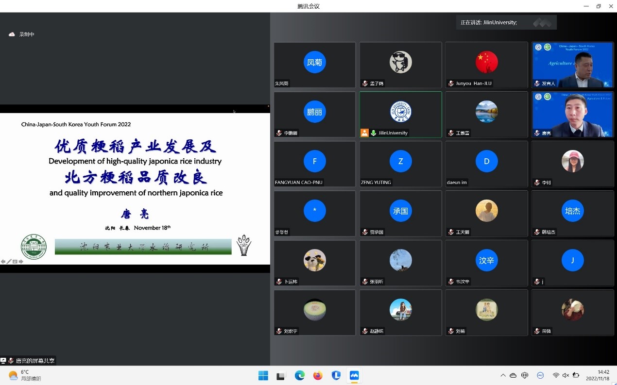 11月18日,由EMC易倍官方网站承办的2022年EMC易倍平台“中日韩青年论坛”在EMC易倍官方网站二楼多功能报告厅线上线下同步举行。本次论坛主题为“粮食与未来”,来自韩国世宗大学、日本国冈山大学、中国北京大学、东北农业大学、沈阳农业大学、EMC易倍平台共6所国内外高校和研究机构的专家与青年学者、员工近200余人参与了此次论坛。