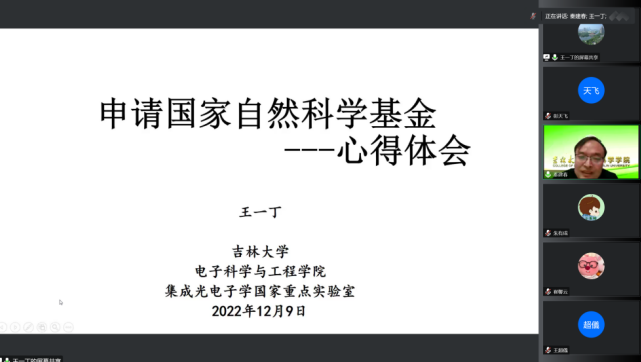 12月9日晚上,首先,东北师范大学刘宝教授做了“国家自然科学基金经验交流”的专题报告,刘老师作为国家自然科学基金杰出青年科学基金获得者和教育部长江学者,详细地分析了国家自然科学基金的政策变化,根据政策变化,分享了国家自然基金项目申请的注意事项和如何提出科学创新问题的个人心得。同时刘老师还以国家自然基金面上项目为例,深入阐明研究内容和研究方法的写作技巧,最后介绍了其他项目申报的关键事项。