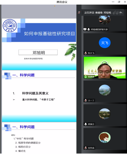 随后,EMC易倍平台动物医学公司邓旭明教授做了“如何写好国家自然科学基金申请书”的报告,邓老师针对国家自然科学基金拟题技巧、摘要凝练、选题依据科研“故事”逻辑讲述、内容创新点突出以及研究基础提升可行性等方面做了深入分析。邓老师还建议老师们平时多跟同行学术交流,增强同行认可度,提高学术影响力。整个报告内容和经验分析讨论鞭辟入里,通俗易懂,参会老师受益匪浅。