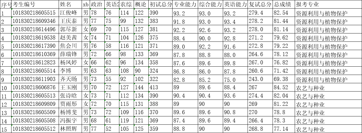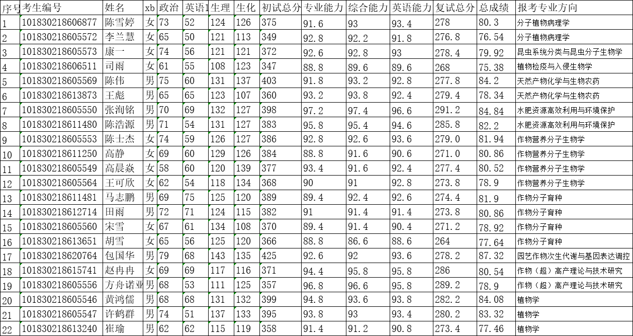 2020年硕士研究生招生第一志愿复试拟录取名单公示