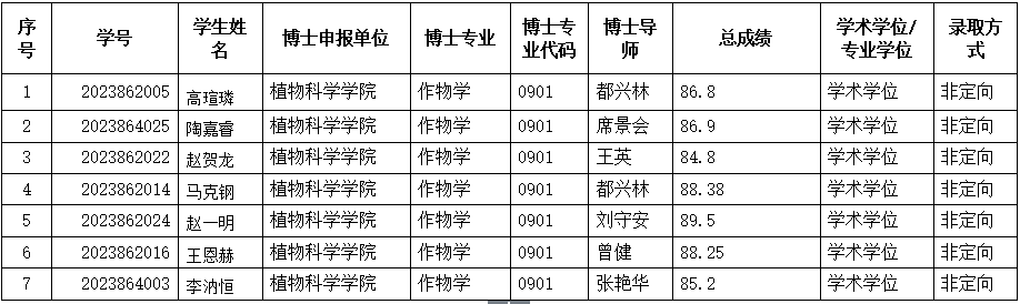 年硕博连读研究生推荐选拔通过考核研究生名单