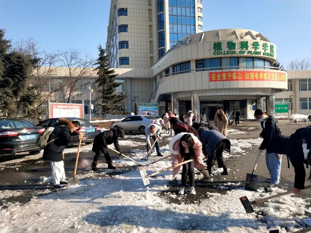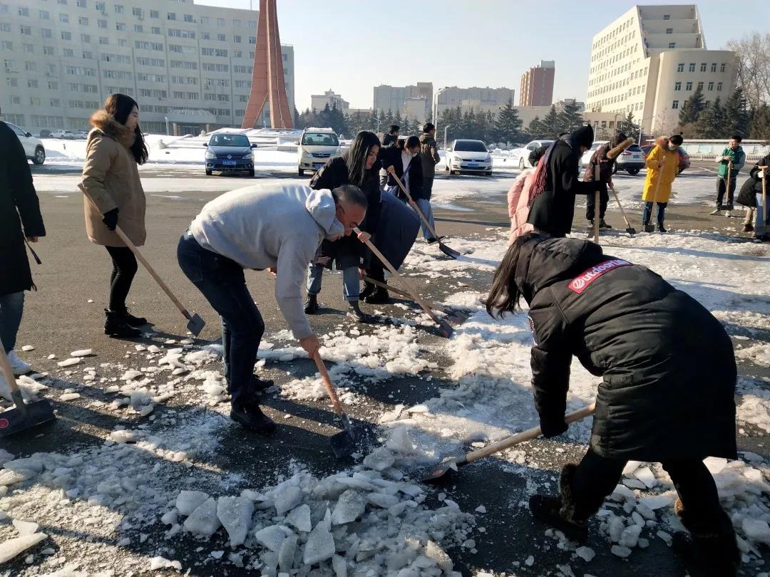 2020年11月19日,长春迎来了一场几十年未见的大雪。前一夜的冻雨挂在路边树木的枝条上,被大自然雕刻成美丽而又沉重的冰棱。鹅毛般的雪花从天上片片飘落,包裹住了整片大地,银装素裹的美丽景象赶走了冬日的肃杀与萧瑟,为校园添加了一丝俏皮的气息。但大雪在带给同学们美丽景象的同时,路上的积雪反复融化后形成厚实的冰层也为大家的出行安全带来了很大的隐患。EMC易倍官方网站本科员工党支部的全体党员和部分积极分子拿起了除冰扫雪工具,展开了此次活动。