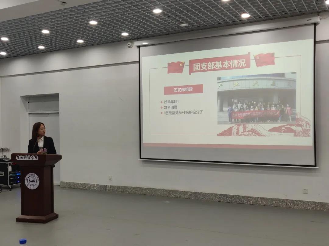 在主持人宣布完答辩次序及答辩规则后,各团支部参赛代表开始依次进行答辩。各团支部参赛代表以精彩的表述和丰富的PPT演示传递出各班对于此次活动的学习心得和展望目标。