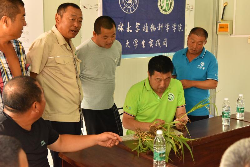 随后,实践团来到EMC易倍官方网站崔金虎教授的试验田进行参观学习。近年来,崔金虎教授为当地农民提供优质种子,结合专业知识对农民进行技术指导,将脱贫攻坚工作开展到田间地头,亲自为农民授课,积极参与并推进县乡农技人员的继续教育,真真切切地把科研成果应用在田间,把国家的相关政策落实到每家每户,极大的提高了当地农作物的产量以及质量,解决了当地农业发展中存在的诸多问题。在崔金虎教授的指导下,实践团的同学们深入实验田间进行除草,热辣的阳光炙烤着同学们,一颗颗汗水从额头滑过砸在泥土中。除草活动结束后,崔金虎教授为同学们详细讲解浅埋滴灌水肥一体化技术,应用此技术成功实现补水和施肥的高效精准。崔教授亲切地与同学们进行交流,他希望同学们作为农科专业学子,要对农业有情怀、有奉献精神,继承发扬吉大学子最为朴素真挚的家国情怀,真正将科研成果写到田间地头,致力农业发展,助力乡村振兴。