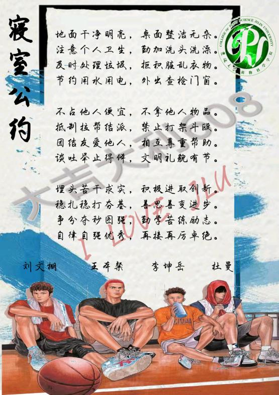 寝室文明不仅体现在物质装饰上,更体现于团结一致的寝室精神,寝室公约作为一个寝室共同遵守的准则,是寝室文化精神的最好诠释。希望各位同学能够以优秀寝室为榜样,积极发展寝室建设,营造寝室良好氛围,让寝室成为我们共同的家!