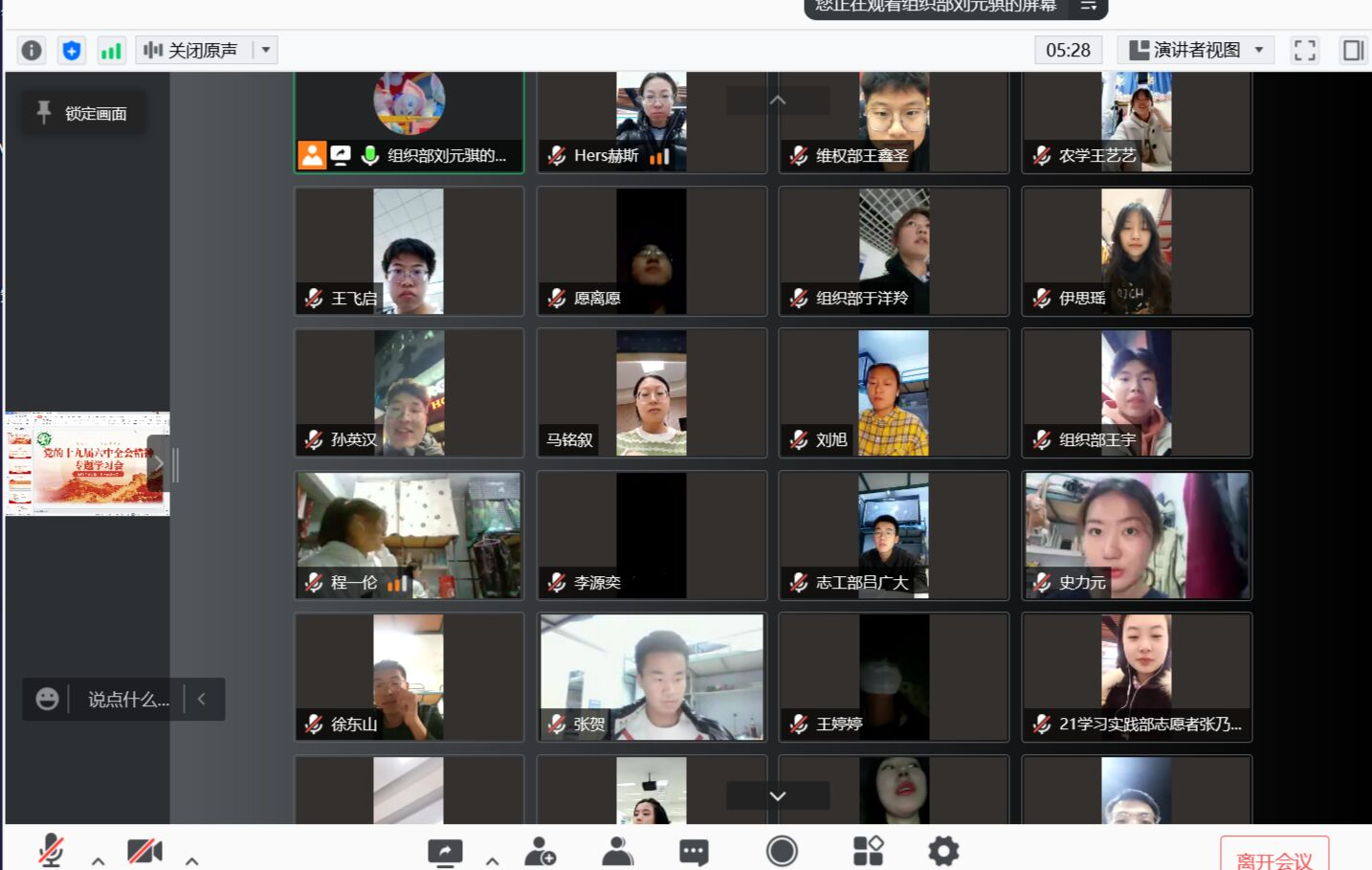 11月8日至11日,党的第十九届六中全会在北京召开。为学习贯彻党的第十九届六中全会精神,EMC易倍官方网站团委于19日组织召开团校培训—十九届六中全会精神线上专题学习会,并于次日在和平校区梦工厂报告厅线下召开专题学习会。员工会全体成员参加此次会议,会议由组织部负责人刘元骐主持。