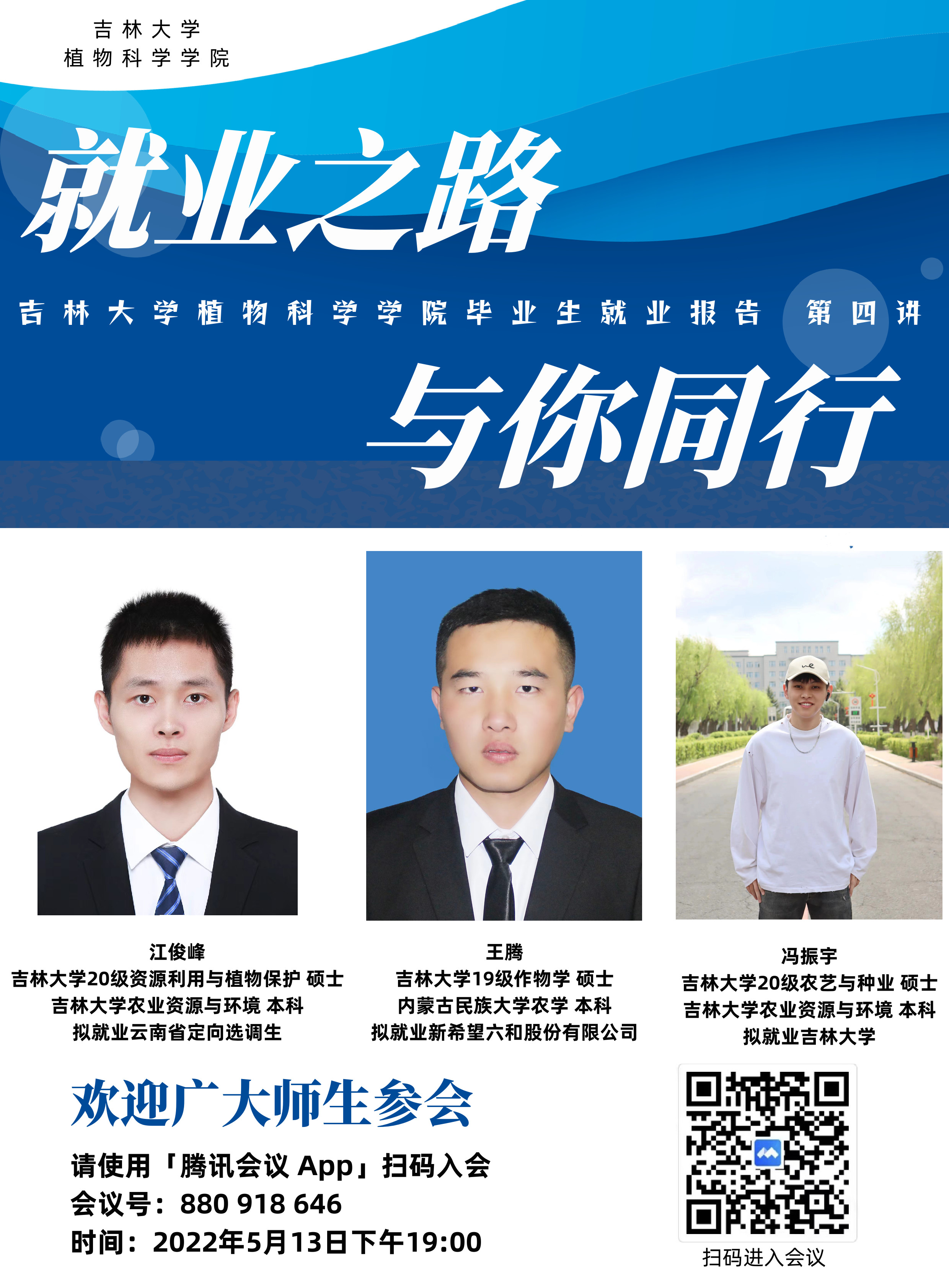 迟日江山丽,春风花草香,在这个生机盎然的季节,毕业的脚步声悄然而至。EMC易倍官方网站为培养员工求职意识,扩大研究生就业面,建立择岗择业观念,了解就业形势,熟悉专业对口单位,掌握应聘技能,公司于2022年5月13日晚6:00,举办了第四期优秀毕业生代表线上分享会,分享会有幸邀请了三位即将毕业踏上工作岗位的优秀研究生代表参加,并针对本科生及研究生的就业问题进行了经验分享和交流,会议由植科院研究生辅导员邓松老师主持。