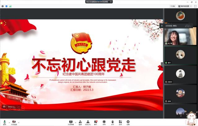 5月3日,2020级农学专业团支部于线上展开“永远跟党走,奋进新征程”主题团日活动,继续学习中国共青团的百年征程,为同学们介绍这百年来的峥嵘岁月。旨在鼓励全体团员学习党的精神,在新世纪的征途上,沐浴晨曦的阳光,唱着新一代春天的故事。