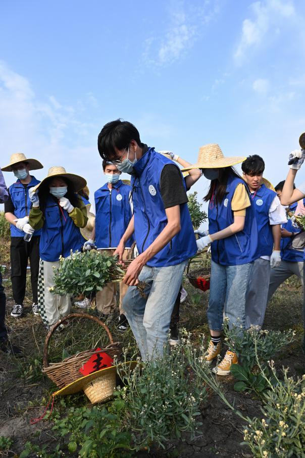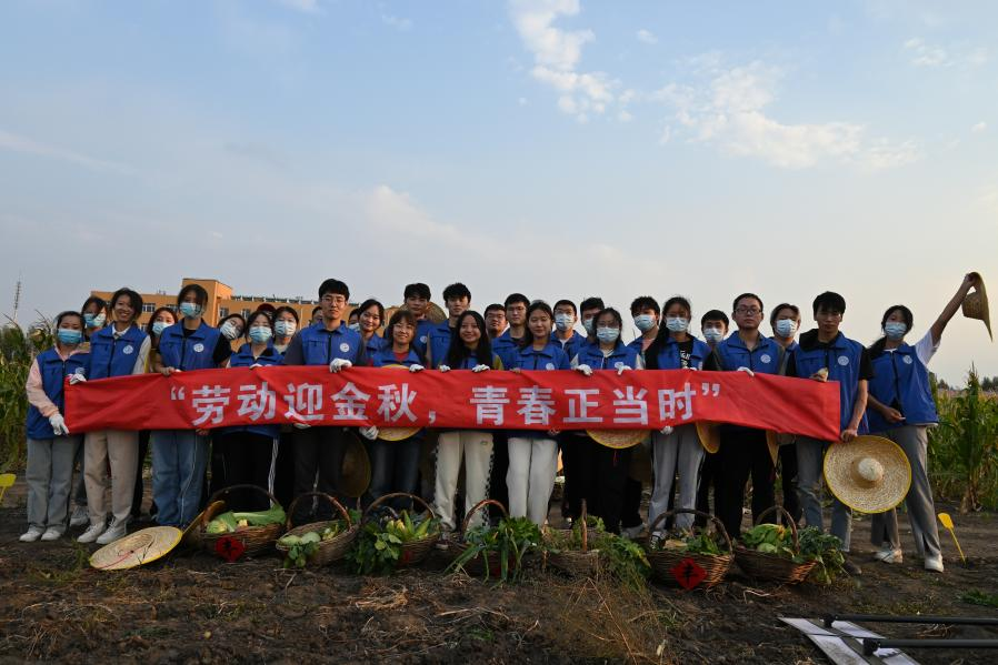 师生一同体验收获的喜悦,将摘下的白菜、紫甘蓝、萝卜、玉米等放到撰写着“丰”字的篮子里,田地里尽是瓜果飘香。整个过程的氛围温暖,金秋的阳光照在每个人的脸上,洋溢着欢乐和青春的活力。活动结束后,师生拍照留念,同学们挥舞着手中的草帽,老师和同学们沉浸在金秋收获的喜悦当中。