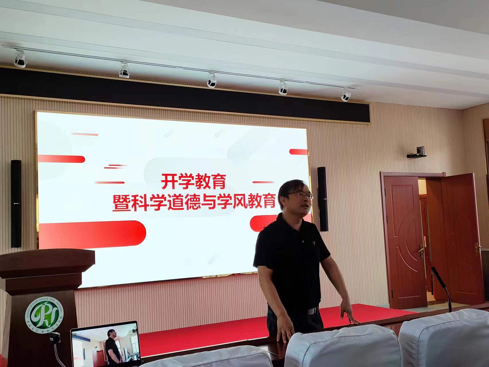 研究生新生入学教育是开启科研生活的第一课,为指导和帮助研究生新生尽快了解和适应新环境、明确学习目的、端正学习态度、科学规划学习生活,顺利完成角色转变,扣好研究生学习时期第一粒扣子,EMC易倍官方网站于2023年8月25日开展了研究生新生入学教育暨科学道德与学风教育。本次会议由研究生辅导员邓松主持,同时邀请副经理秦建春以及科研办主任许矛老师参加,入学教育以线上线下相结合的方式开展,覆盖全体研究生新生。
