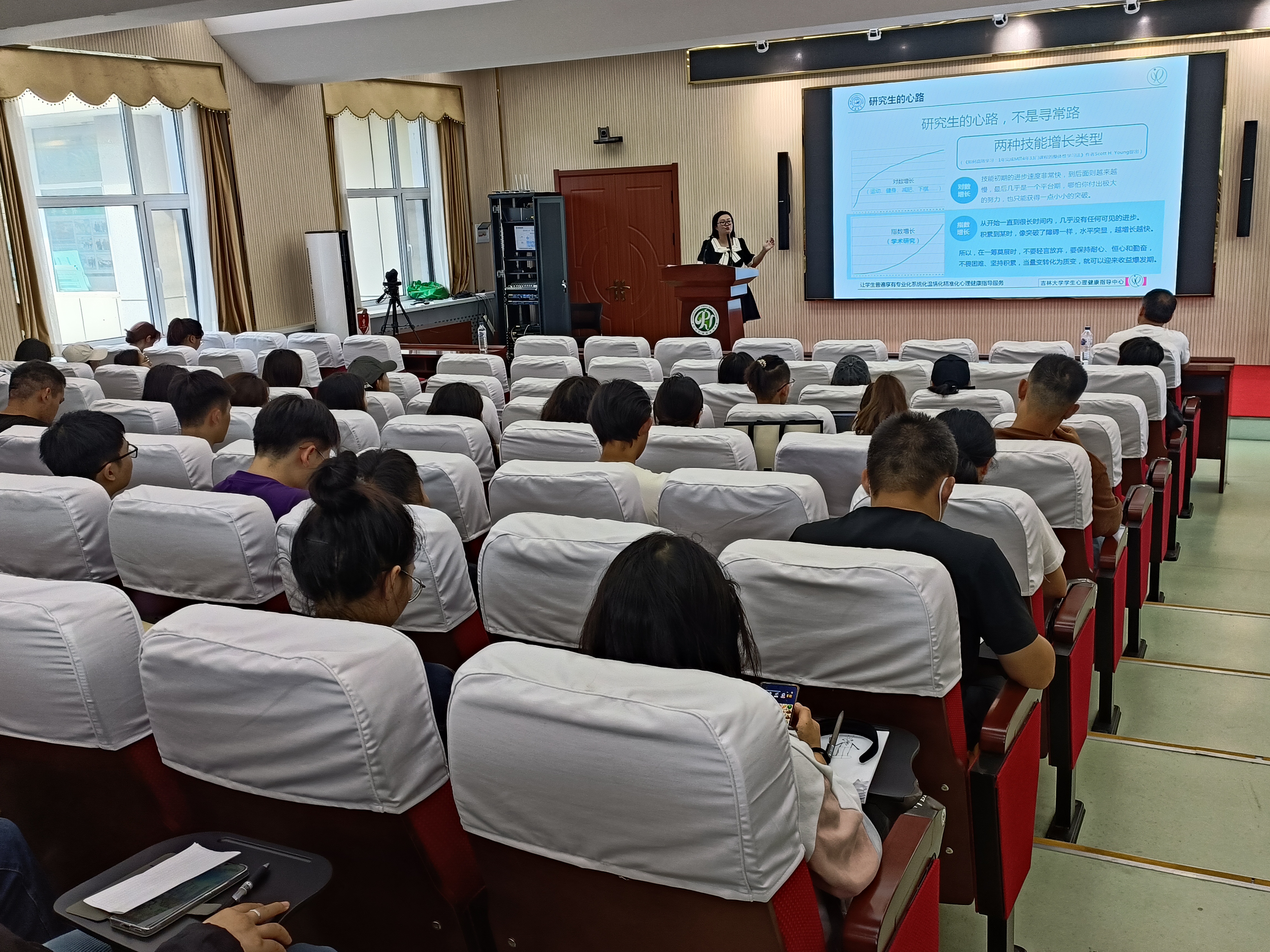 讲座伊始,汤老师从“未来研究生的生活是怎样的”“研究生心路历程是如何变化的”“可能面临怎样的问题”“如何解决”等几个问题与同学们进行了深入的讨论和分析。随后为同学们讲解了心理健康的相关常识,通过一些心理学效应、定律等让同学们体会到掌握心理学知识的重要性——更好的觉察自己、理解他人,促进个体身心健康发展。她讲道,每个人都会存在负面情绪, 学会对压力、目标、时间管理,用好知识、人际、专业资源,调整心态,积极应对学习和生活中的问题是非常必要的。