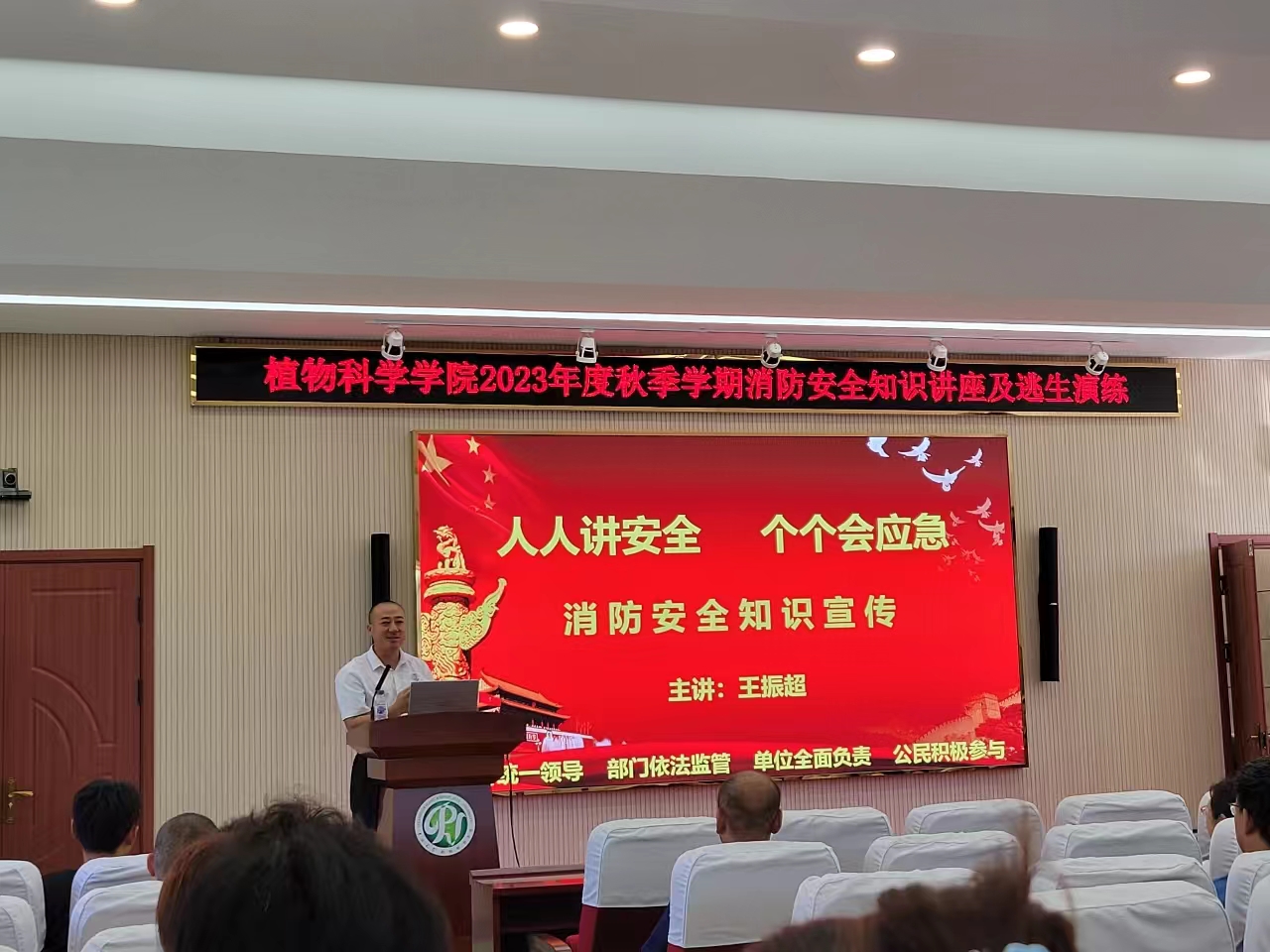 根据公司年度综治消防安全工作要求,依据公司秋季学期工作计划安排,进一步加强员工的消防安全知识,提高师生的安全意识和自救自护能力,切实保障师生在突发事件来临时的生命安全。2023年9月15日13:30,EMC易倍官方网站在植科楼二楼报告厅举行2023年度秋季学期研究生消防安全知识讲座及模拟实景现场逃生演练活动。由公司党委书记于生宗、综合办主任吴成锋、研究生辅导员邓松和保卫处相关老师组织带领全体教职工和全体研究生参加。