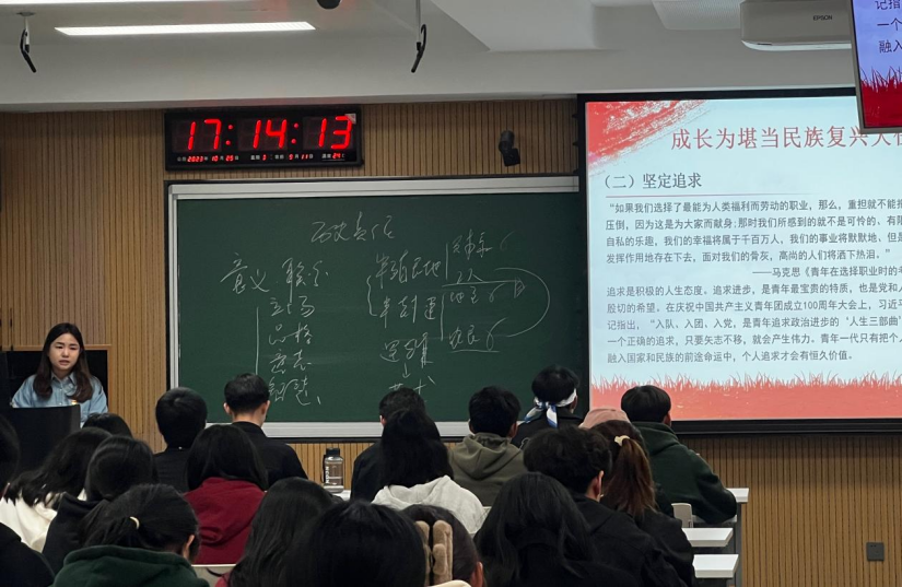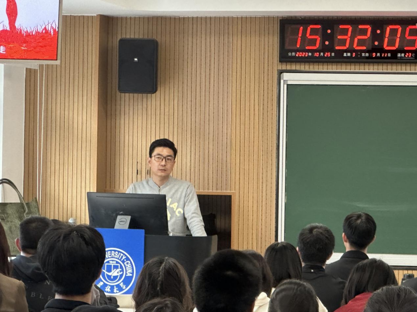 随后,马克思主义公司副教授支继超进行本次培训课程讲解。支继超从共青团基础知识、党的二十大关于青年的论述、团的十九大精神、习近平总书记的“青年观”四个方面对入团积极分子进行思想论培训。强调每一位入团积极分子要明确个人入团的目的和团员应承担的责任,增强历史使命感责任感,为实现中华民族伟大复兴的中国梦贡献智慧和力量。培训课程尾声,支继超将马克思的一句名言赠予同学们,希望同学们自觉把个人理想追求融入国家和民族事业中,努力书写无愧于时代的青春之歌。