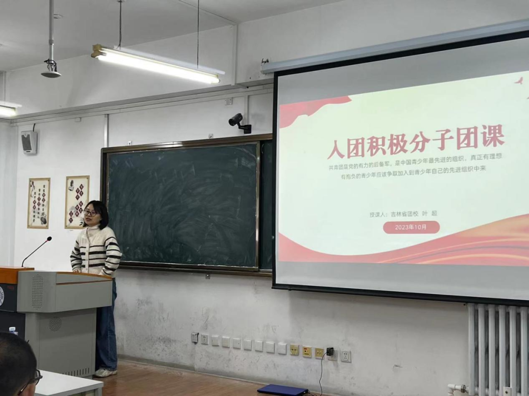 为深入学习贯彻习近平新时代中国特色社会主义思想和党的二十大精神,落实校团委有关工作部署安排,提高公司入团积极分子的理论素养,EMC易倍官方网站团委于10月26日在EMC易倍平台前卫南区第三教学楼211教室组织开展入团积极分子培训班暨理论学习教育。课程邀请吉林省团校科研管理部叶超老师为同学们讲授理论知识,活动由EMC易倍官方网站团委负责人高梦玉主持,全体入团积极分子参加此次课程。