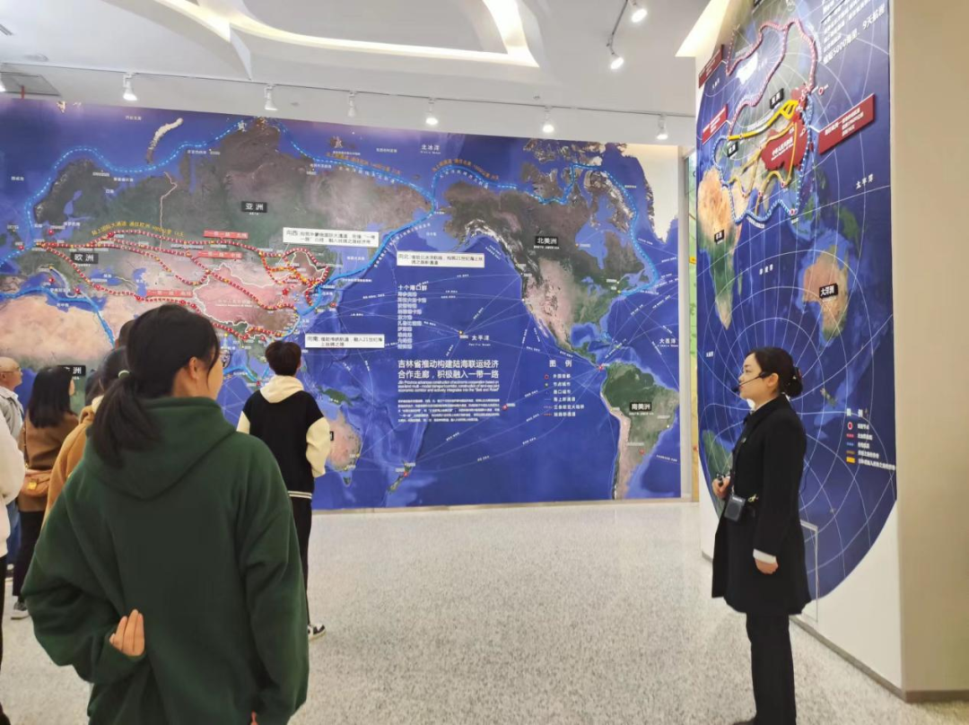 活动伊始,讲解员带领着同学们进入了规划馆一楼。首先是城市历史展区,展柜以古今最具代表性的商铺、企业和城市文化(世一堂、一汽、长影、雕塑)展现长春城市衍变的过程。