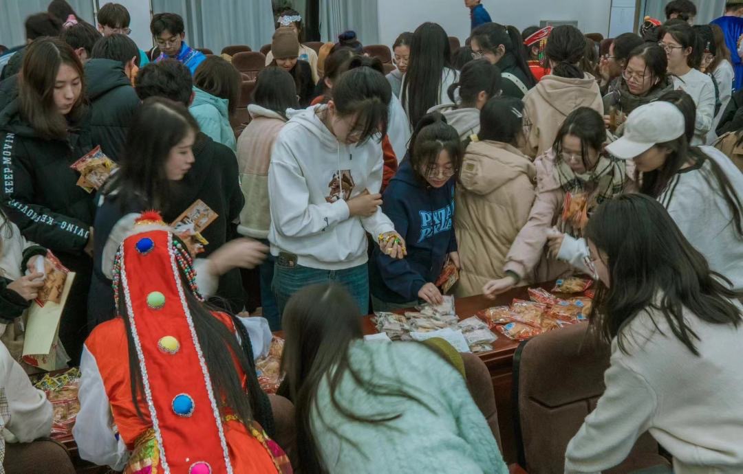异域风情的视听盛宴后,进行的是具有少数民族特色的趣味游戏环节。“民族语言传声筒”“你比划,我猜”两个设计精巧、形式各样的活动吸引众多员工参加,同学们脸上洋溢着幸福的笑容,欢笑声此起彼伏,将活动推向高潮。随后,少数民族同学禄荣卜为大家带来了充满民族风情的《不要怕》、唐青山同学带来《土家迎客歌》,二位同学凭借着娴熟的技艺和潇洒的表演风格,给大家留下了深刻印象,展现出植科学子的青春风采。在最后的民族服装展示与民族特色美食品尝环节,各少数民族同学身着民族服饰,依次向大家展示各民族精美独特服饰造型,发挥各民族特长,为观众缓缓展开一道又一道异域图景,同学们品尝着特色美食,促进了对少数民族文化的了解。