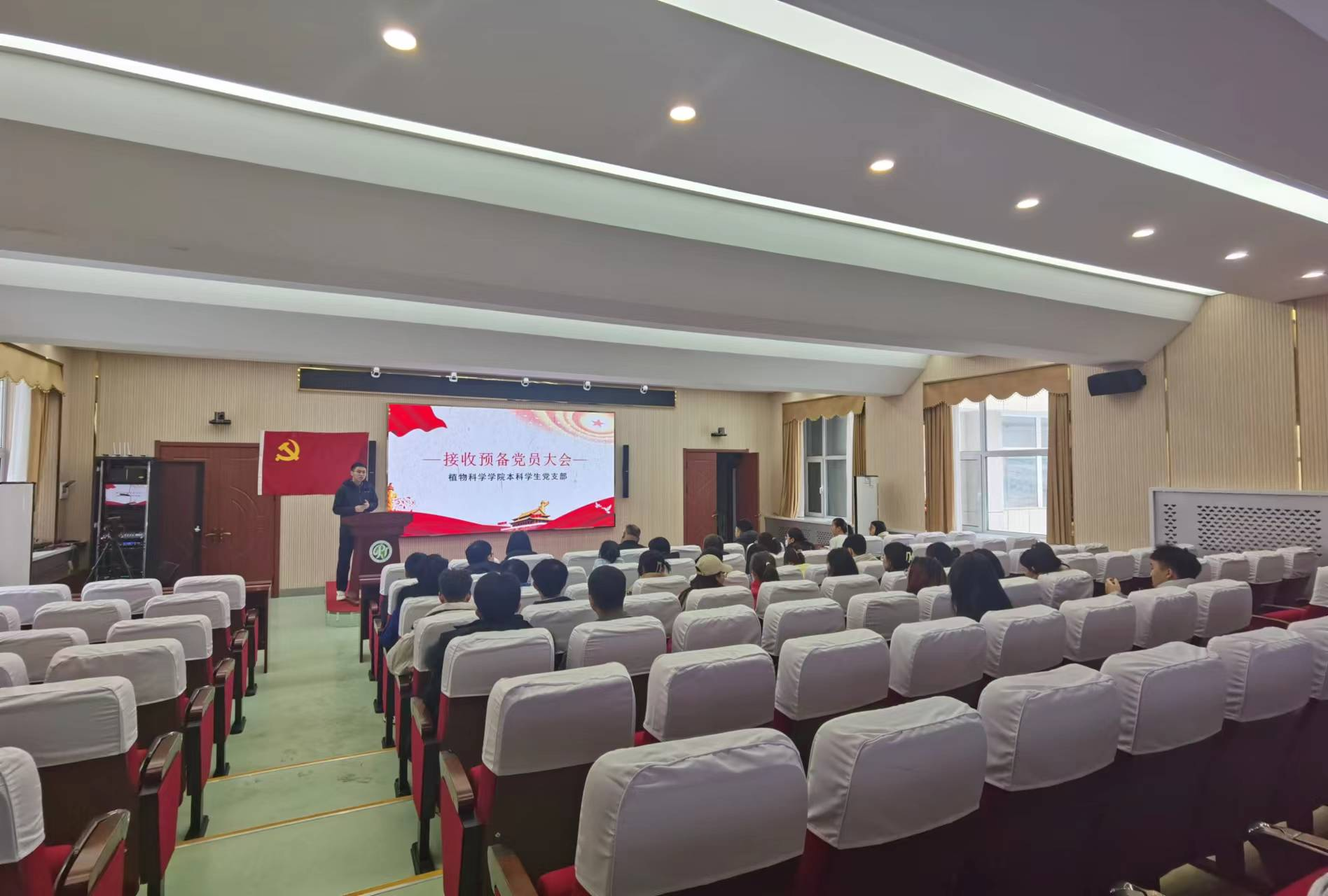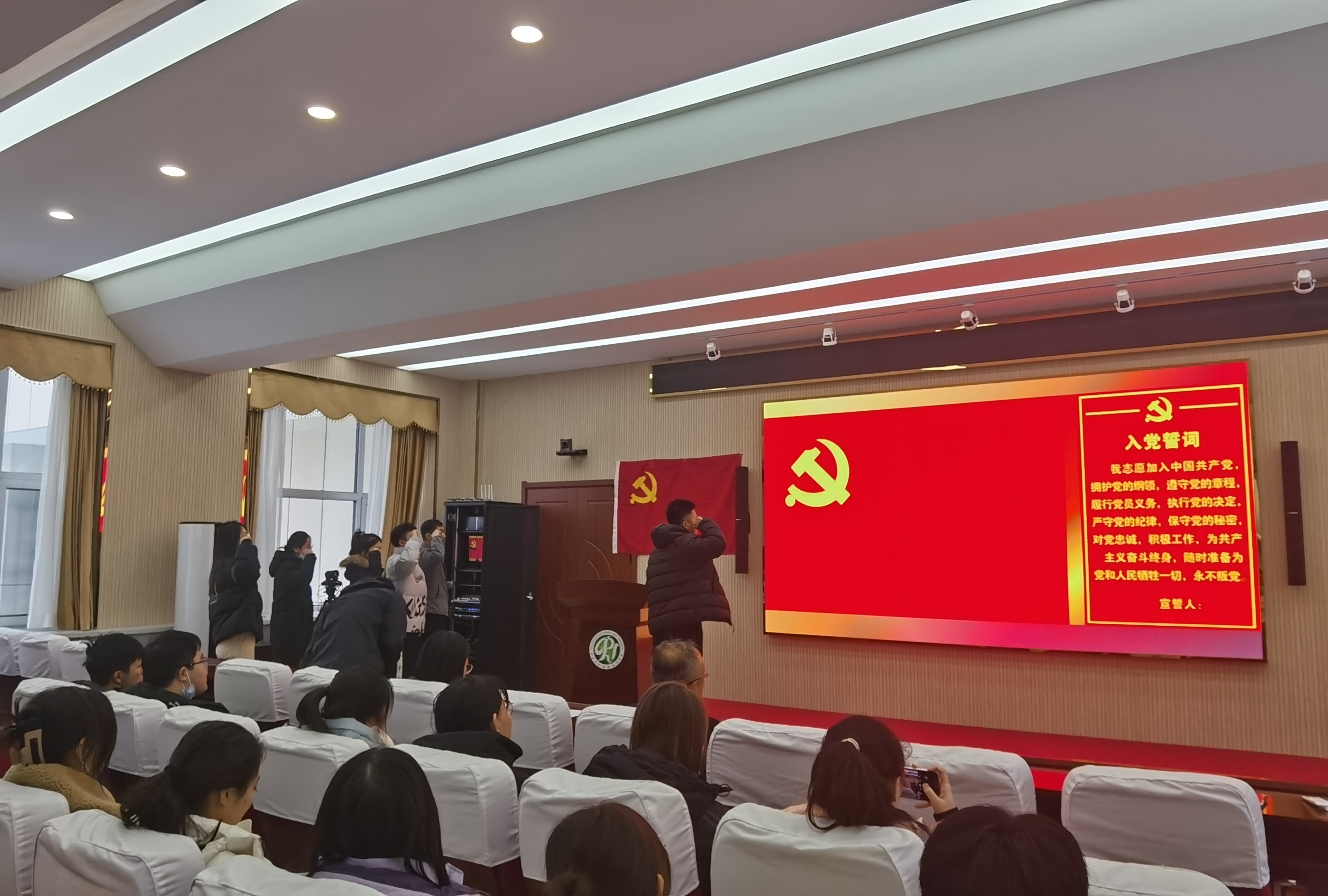 第五项议程,由李志远同志带领新发展的预备党员面向党旗高举右拳庄重宣誓,铿锵有力的誓言让每一名同志铭记于心,时刻牢记自己的党员身份,做一名无愧于党和人民的共产党员。