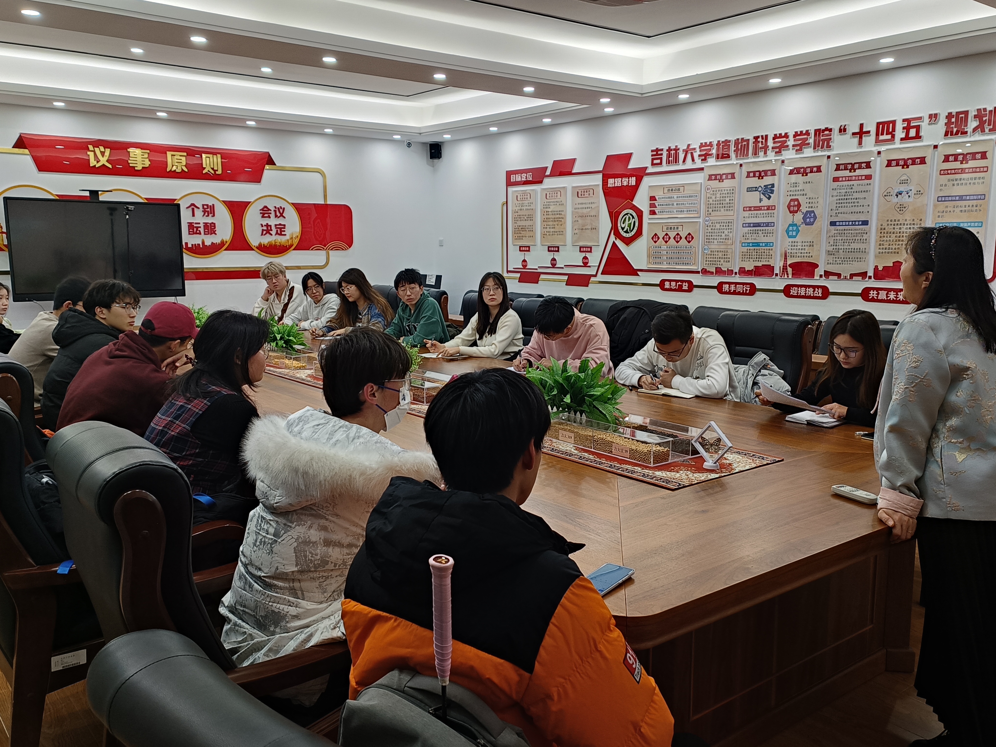 会上,师生聚焦同学们的日常学习生活,在课业、升学、就业等多个方面展开了深入而广泛的交流,各班班长、团支书踊跃发言,依次阐述在日常学习、工作、生活中所关注到的班级中存在的问题。会议整体氛围融洽,针对提出的问题,高梦玉与班长、团支书进行讨论沟通,及时了解员工诉求,更好地助力公司员工成长与进步。